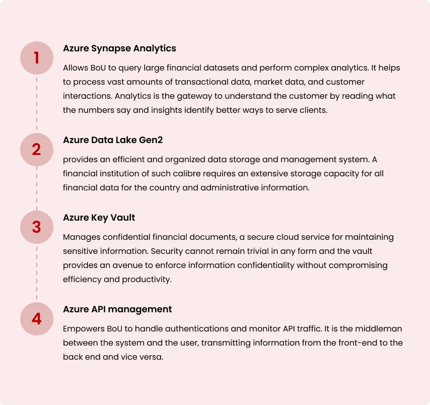 Implementing BoU’s Electronic Money Data Replication Service unlocked a new realm as they experienced a 65% boost in efficiency. The team no longer required heavy manual interventions since data ingestion and processing workflows became streamlined. The automated data pipelines and real-time analytics boosted productivity and improved operational efficiency. Additionally, Azure’s scalable infrastructure accommodated growing data volumes seamlessly. The heightened security measures improved compliance levels. Together, BoU increased the pace of decision-making, leading to significant ROI.